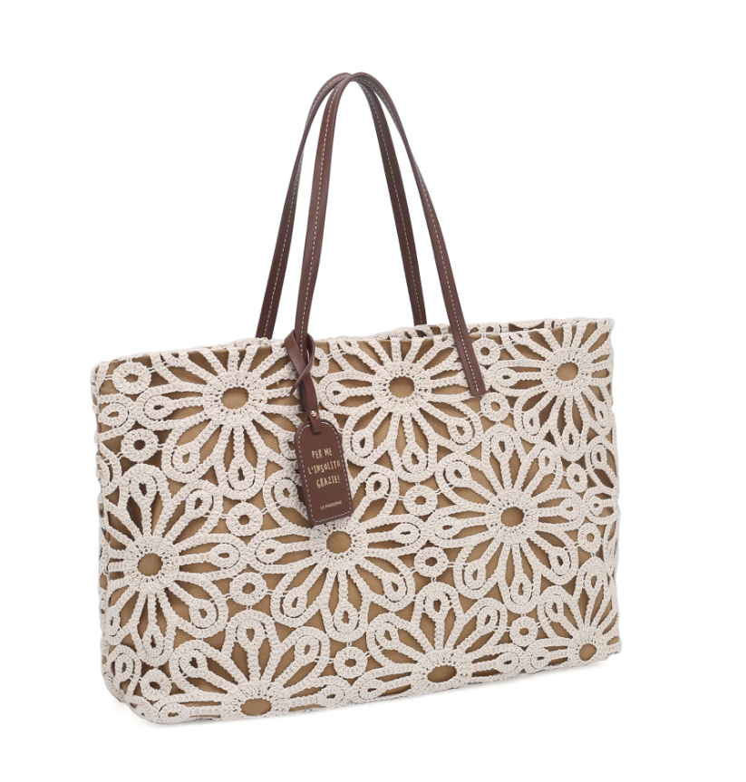 Shopping bag di grandi dimensioni in pizzo e canvas