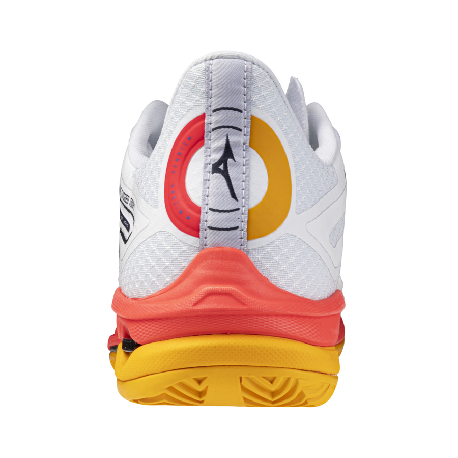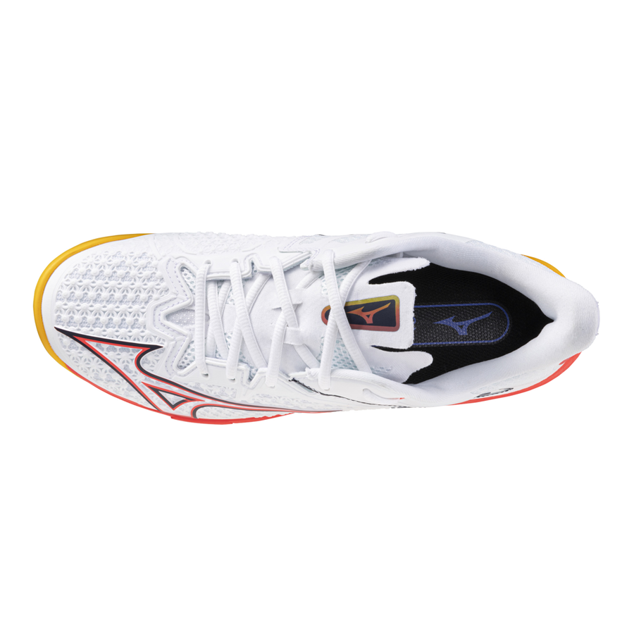 I giocatori avanzati possono far affidamento su questa scarpa che aumenta la velocità per battere gli avversari. Coniuga la leggerezza con caratteristiche che migliorano i movimenti di partenza, la facilità di movimento e i cambi di direzione. Tra queste caratteristiche vi sono MIZUNO ENERZY NXT e MIZUNO ENERZY INSOLE sulla pianta del piede per garantire partenze e cambi di direzione rapidi, oltre all'aggiornata WAVE PLATE che converte la tua potenza in velocità. La scarpa è stata inoltre aggiornata in termini di comfort, ivi compreso il design della linguetta, che risulta morbida sul piede, e il Dyna-Eyelet Wrap, che lo avvolge comodamente. [Colpisci la palla più rapidamente con un primo passo veloce!] 1) Grazie al nuovo materiale funzionale MIZUNO ENERZY NXT nella pianta del piede più la MIZUNO ENERZY INSOLE, questa scarpa facilita i cambi di direzione e i movimenti iniziali rapidi necessari per un modello da velocità. 2) Grazie all'aggiornamento della WAVE PLATE (estensione dell'avampiede solo all'esterno e adattamento del design D-Flex Groove), questa scarpa offre un'eccellente sensazione di rigidità che converte immediatamente la potenza in velocità e movimenti di kick-off più fluidi. 3) La nuova e funzionale Dyna-Eyelet Wrap, una struttura degli occhielli con ampie aperture, offre una calzata che sembra avvolgere l'intero piede ed è concepita per far sì che la scarpa si adatti perfettamente ai movimenti del piede, sia a riposo che in movimento. 4) Design 3D-SOLID aggiornato. Pur mantenendo la morbidezza della tomaia, che ha riscosso grandi consensi sin dal modello precedente, la durabilità è stata migliorata attraverso una maggiore copertura dell'area interna del collo del piede soggetta a usura. 5) Il design dei bordi della linguetta della scarpa è stato aggiornato rispetto a quello del modello precedente. Ora è più morbido a contatto con il piede e si adatta più facilmente alla sua forma, consentendo una calzata senza alcun fastidio.