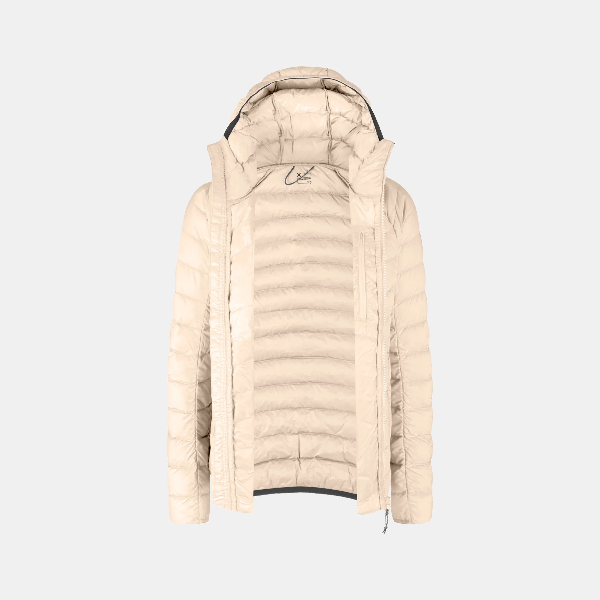 Questa giacca imbottita da donna è pensata per il tempo libero e le attività all'aperto informali, offrendo calore affidabile in un design leggero e comprimibile. Ideale per l'uso quotidiano in condizioni di freddo, è un capo essenziale per le rilassate giornate invernali. Caratterizzato da un guscio in nylon super leggero con una struttura mini ripstop resistente all'abrasione e anti-UV, il capo è trattato con una finitura idrorepellente priva di sostanze chimiche per tenere lontana l'umidità e asciugarsi rapidamente. All'interno, l'imbottitura in piumino d'anatra Moulard "Pure White" ha una finitura idrorepellente, che mantiene la morbidezza e il calore anche in condizioni di umidità. Completa di cappuccio, polsini e orlo elasticizzati per aiutare a trattenere il calore, oltre a una tasca interna con zip e tasche per le mani per offrire un pratico spazio di archiviazione.