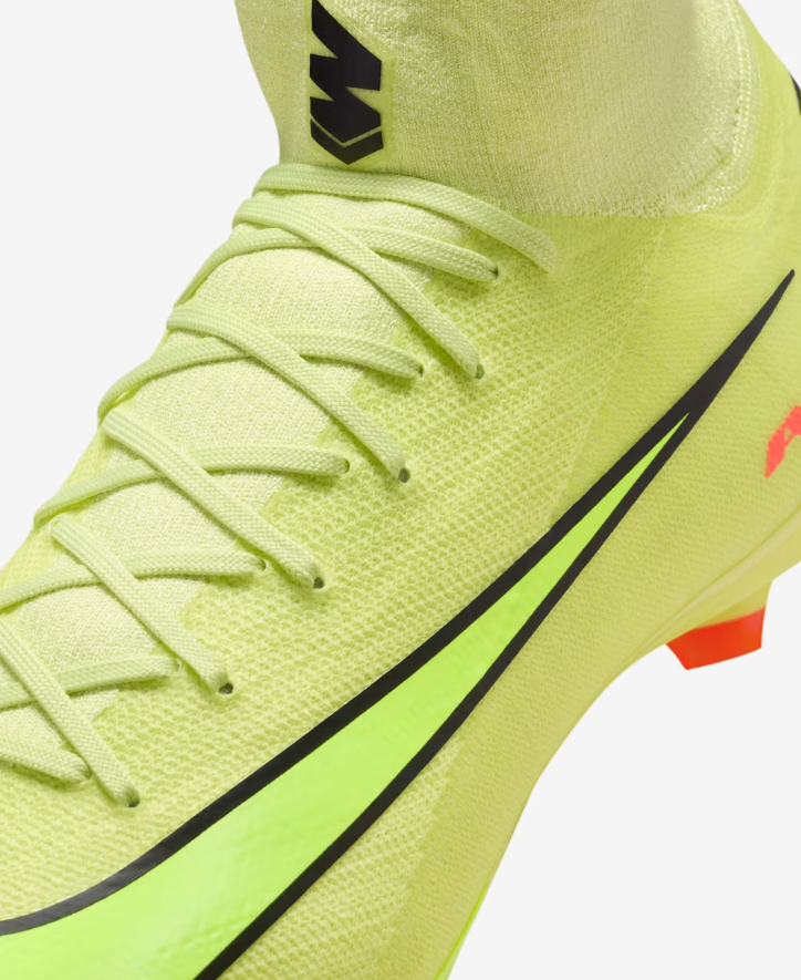 Per la prima volta nella linea Mercurial, abbiamo sviluppato una tomaia interamente in Flyknit. È calibrata per le esigenze del gioco e ha superato il vaglio di Mercurial, il che significa che è progettata per offrire velocità. Il Flyknit incredibilmente leggero e resistente sugli inserti laterali dona supporto e migliora il contatto del piede con il pallone. Il collare elasticizzato in Flyknit offre una calzata sicura.