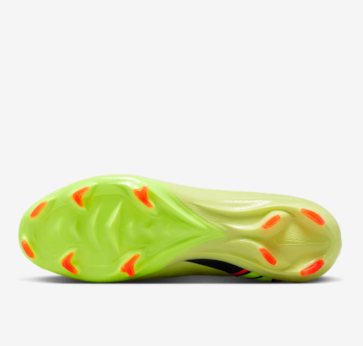 La struttura di trazione con motivo a onde è formata da una serie di tacchetti a cascata, che coinvolge una superficie maggiore dell'unità Air Zoom per un'aderenza sempre ideale. Il tacchetto più grande ha la stessa altezza dei nostri tradizionali tacchetti medi, quindi la trazione non è compromessa. Abbiamo abbinato la trazione a onde con lamelle e tacchetti con motivo a V evoluti per aiutarti a fermarti in un attimo durante i cambi di direzione fulminei.