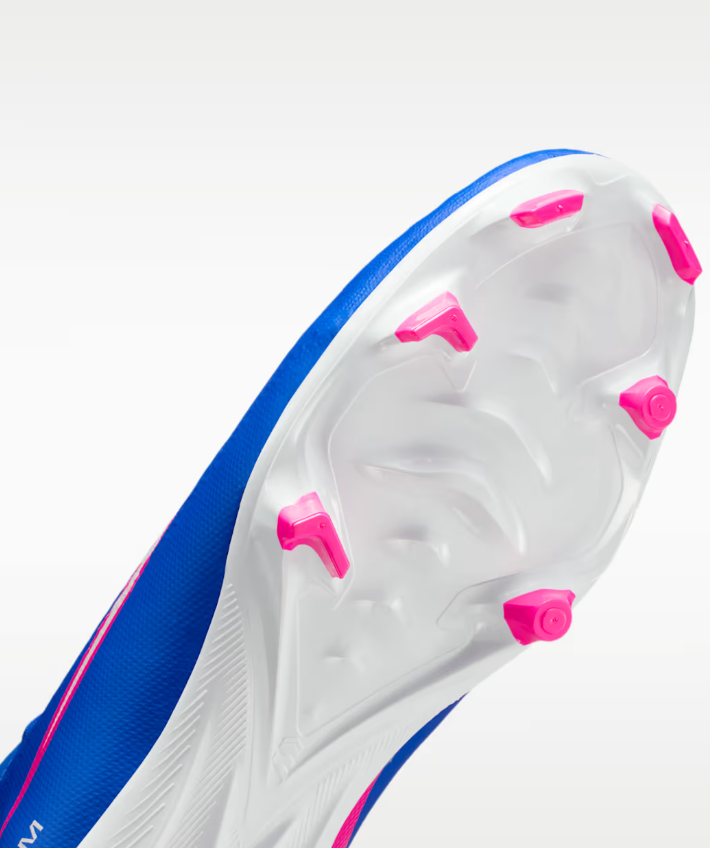 Il motivo di trazione ondulato è composto da una serie di tacchetti a cascata e ricopre una superficie maggiore dell'unità Air Zoom per un'aderenza ideale. Il tacchetto più grande ha la stessa altezza dei nostri tradizionali tacchetti medi, quindi la trazione non è compromessa. Abbiamo abbinato la trazione a onde con tacchetti innovativi con motivo a V e lamellari per facilitare i cambi di direzione fulminei.