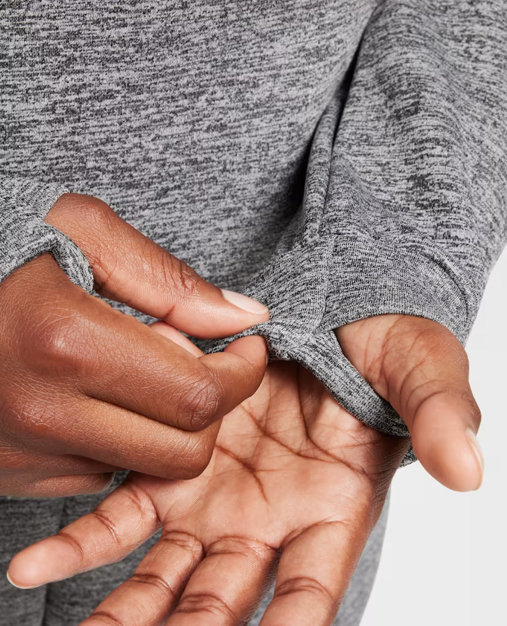 Gli occhielli per il pollice sui polsini aumentano la copertura e tengono a posto le maniche quando ti muovi.