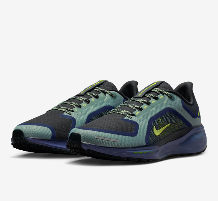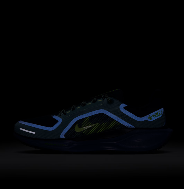 L'ammortizzazione reattiva di questo modello Pegasus per l'inverno consente un'andatura energica durante le corse su strada, in condizioni di umidità. Prova il ritorno di energia e la leggerezza di questa scarpa, dotata di due unità Air Zoom e di intersuola in schiuma ReactX. Inoltre, la tomaia impermeabile in GORE-TEX e i dettagli dal design rifrangente all-over ti aiutano ad affrontare il maltempo senza rinunciare al comfort.