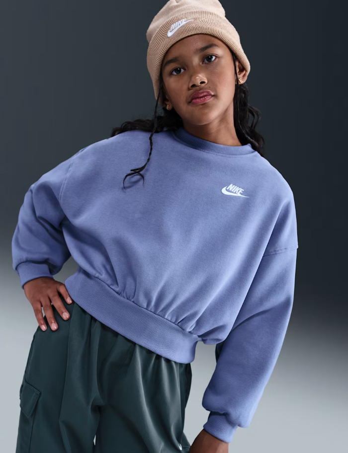 Sempre fresca. Comfort costante. Liscia fuori e morbidamente spazzolata all'interno, questa felpa in fleece leggero è l'ideale per vestirti a strati quando desideri stare un po' più al caldo. Il baggy fit sul corpo, con taglio leggermente corto, offre libertà di movimento senza ingombrare.