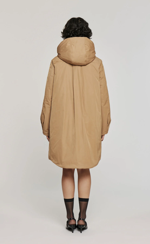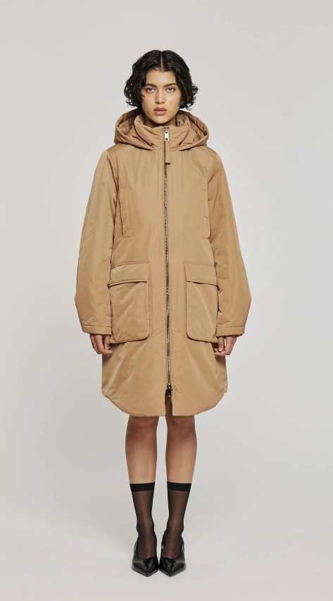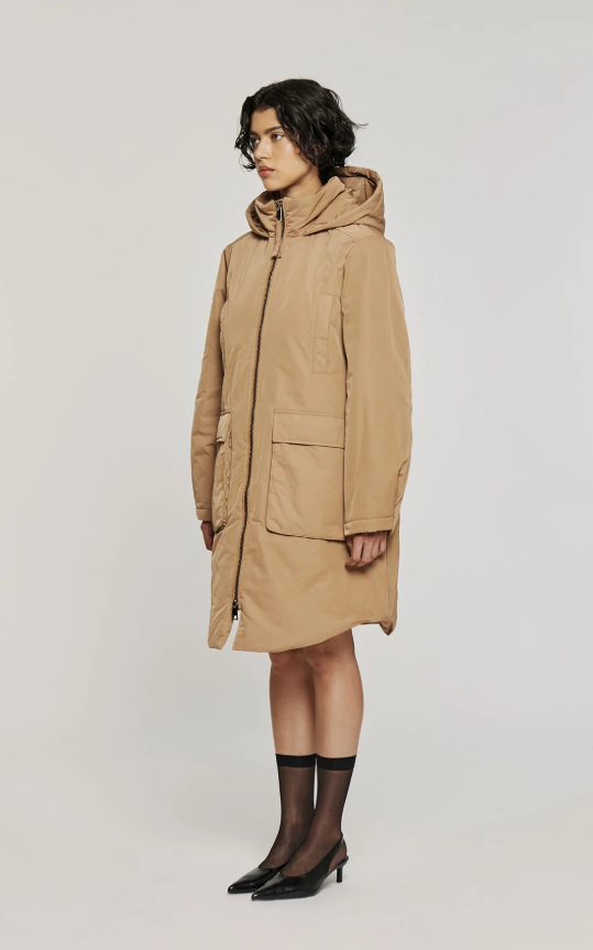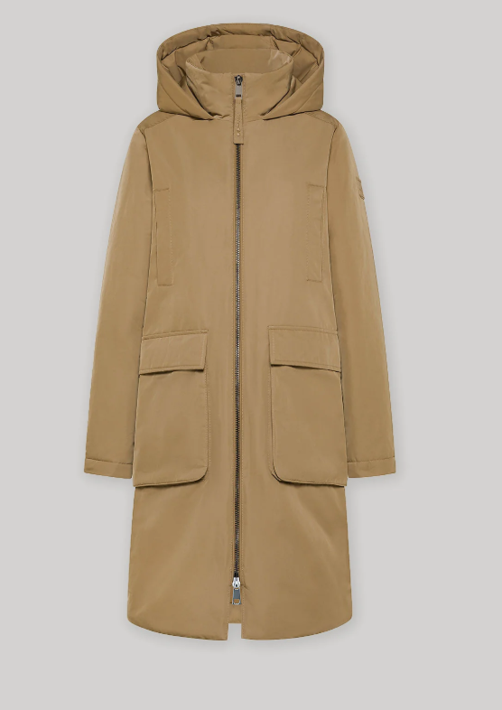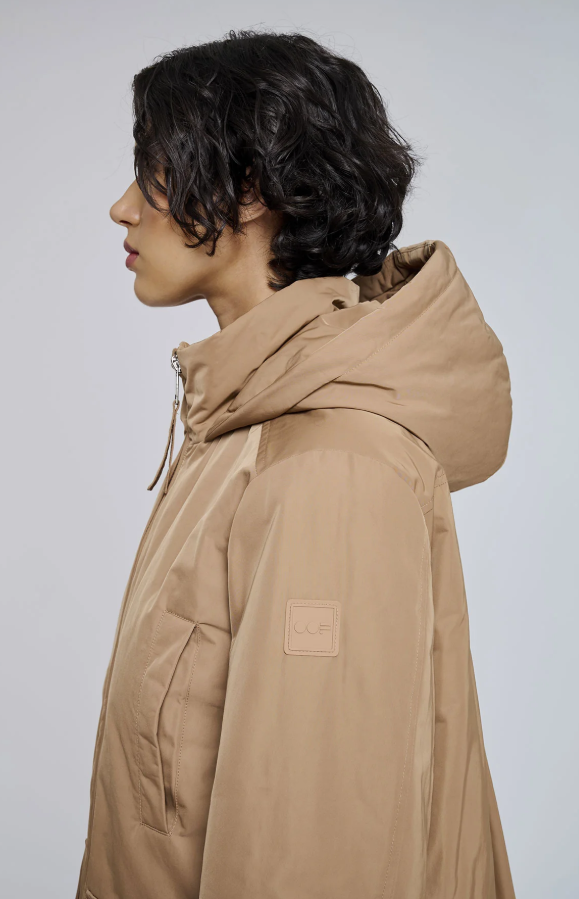 Giacca lunga con cappuccio, caratterizzata da una vestibilità regolare e un design essenziale. Realizzata in nylon memory water repellent, un tessuto tecnico che garantisce resistenza e protezione dagli agenti atmosferici, mantenendo al tempo stesso una mano morbida e una linea pulita. Le tasche a toppa applicate sul fronte aggiungono funzionalità, mentre la chiusura con zip centrale assicura praticità quotidiana.