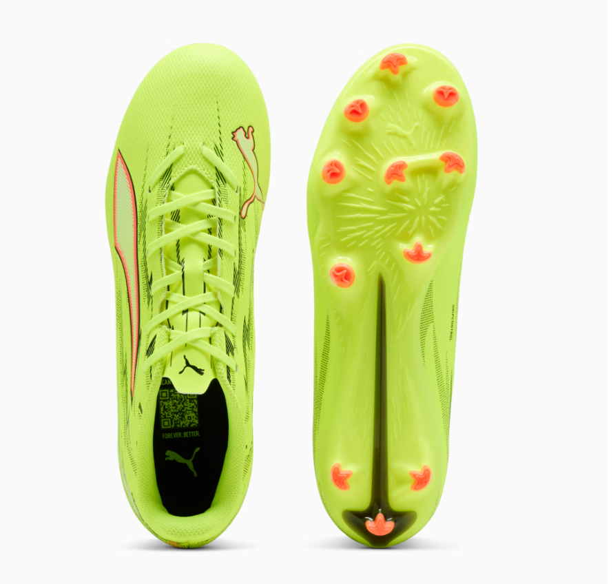 Velocità sotto controllo. Perfetta per chi sta iniziando a innamorarsi del gioco più bello del mondo, questa versione di ULTRA è dotata della suola SPEEDSYSTEM di PUMA e del design dei tacchetti FastTrax, pensati per offrire la massima trazione. Tre tacchetti arrotondati sul lato laterale consentono di passare dal terreno solido all'erba sintetica. Ovunque si giochi, si gioca a pieno ritmo.
