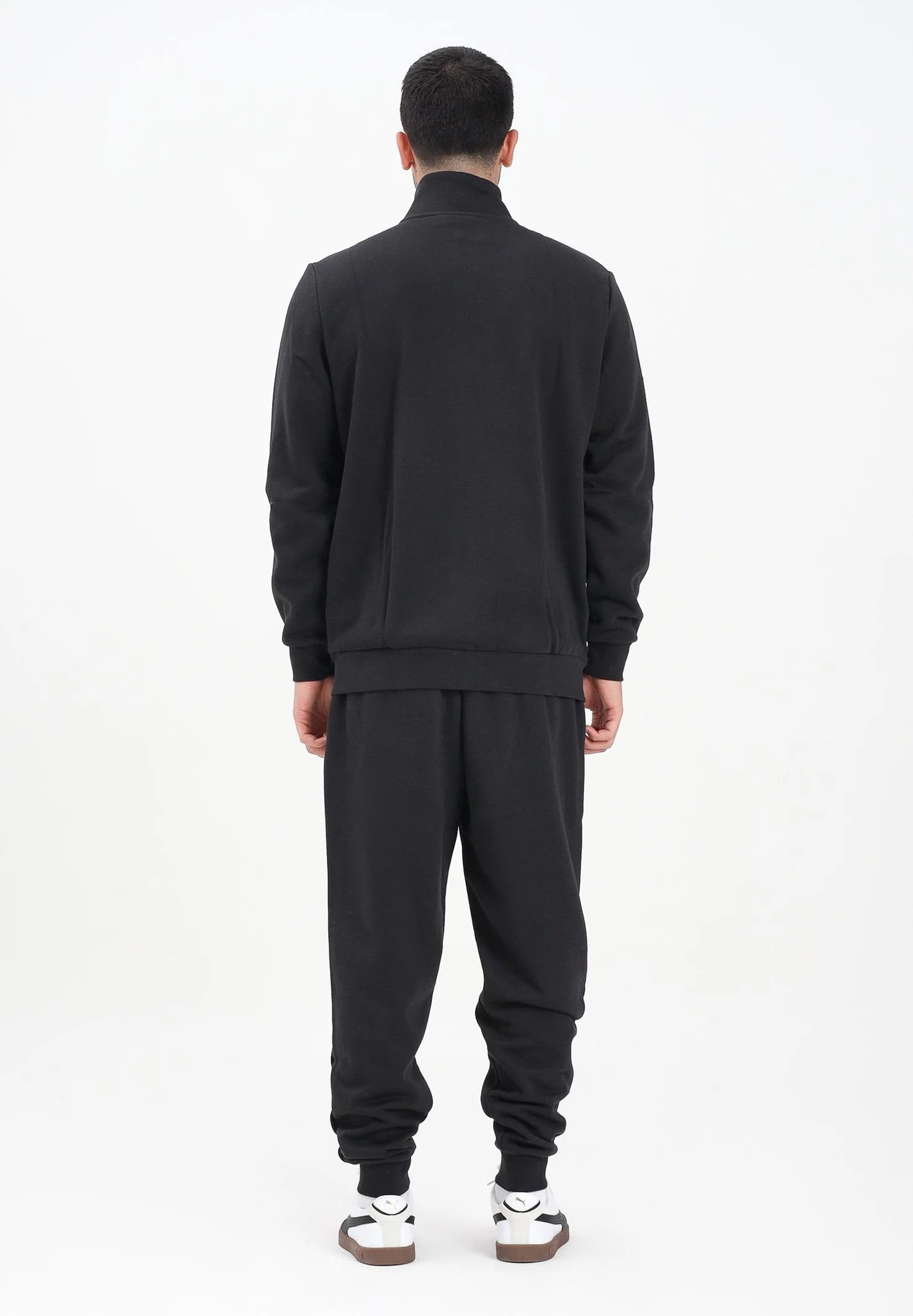 PUMA Tuta Essentials nera da uomo. Mostra il tuo stile con l'ultima tuta di PUMA. La giacca presenta un collo alto e polsini a coste, mentre i pantaloni offrono una fascia elasticizzata in vita con coulisse interna. Entrambi i pezzi sfoggiano la stampa gommata del logo N. 1. Perfetto per rilassarsi a casa.