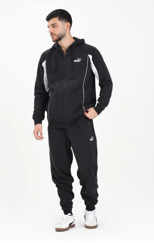 Tuta Sport nera da uomo. La tuta con cappuccio Puma SPORT è una soluzione versatile sia per le attività sportive che per il tempo libero. Combinando comfort, praticità e design moderno, diventerà un elemento indispensabile del tuo guardaroba. Il set include una felpa a maniche lunghe con cappuccio regolabile con coulisse. Il modello presenta una cerniera a tutta lunghezza per la massima praticità, oltre a polsini a costine che offrono una vestibilità comoda e trattengono il calore. I pantaloni sono completati da un elastico in vita che si adatta facilmente alla figura, offrendo libertà di movimento e praticità nell'uso quotidiano. Il tessuto morbido e allo stesso tempo resistente garantisce resistenza e comfort, rendendo la tuta ideale per l'allenamento, le passeggiate o il relax.