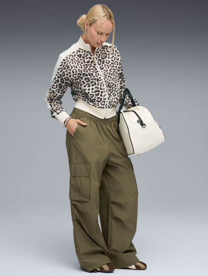 Scatena il tuo lato selvaggio con la giacca da ginnastica di PUMA, caratterizzata da una stampa leopardata all over, inserti a pannello T7 e una cerniera bidirezionale. L'orlo e i polsini a costine assicurano una vestibilità aderente, mentre il logo PUMA Cat ricamato aggiunge un tocco di autenticità.