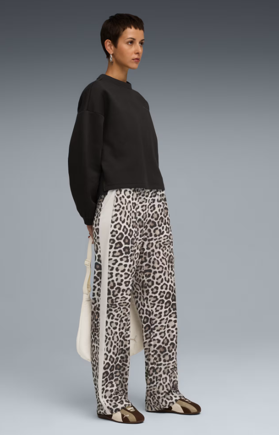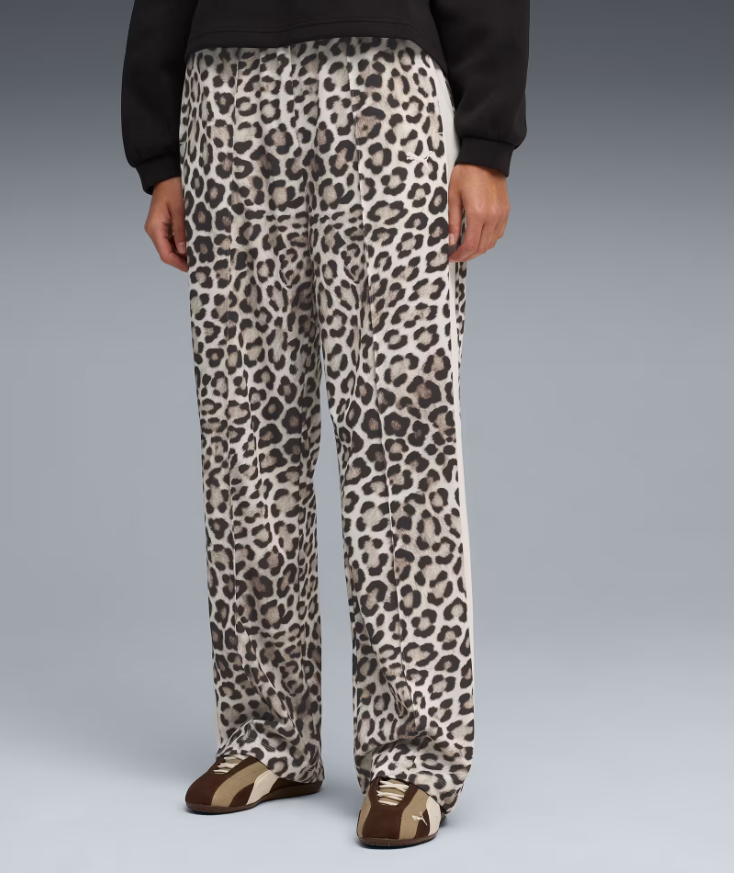 Entra nella natura selvaggia con i pantaloni da ginnastica PUMA a stampa leopardata. Caratterizzati da inserti in pannello T7, cintura a costine con coulisse interna e ricamo Cat Logo, questi pantaloni sono pensati per chi osa distinguersi. Scatena il tuo felino interiore e lascia il segno.
