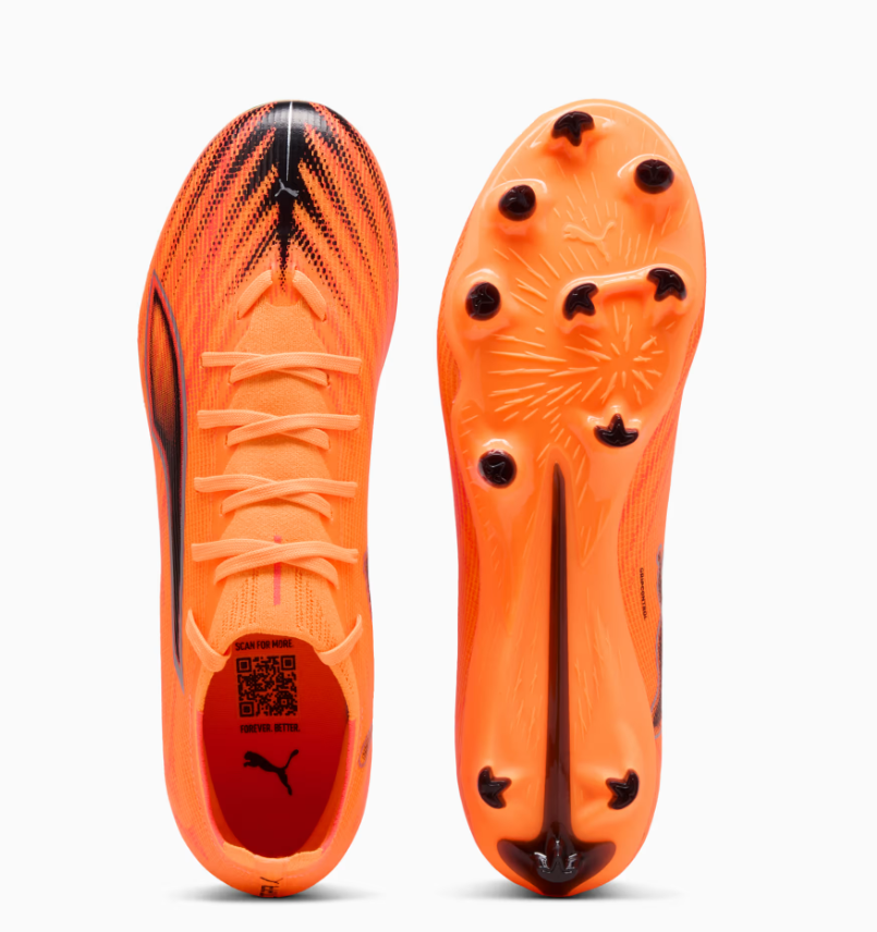 Accelera al massimo con ULTRA 6. Ideale per i velocisti in ascesa, questa versione vanta una tomaia in mesh tecnologico, la suola SPEEDSYSTEM di PUMA e tacchetti FastTrax per una trazione multidirezionale senza compromessi. Tre tacchetti arrotondati sul lato laterale consentono di passare dal terreno solido all'erba sintetica. Niente di più. ULTRA, totale.
