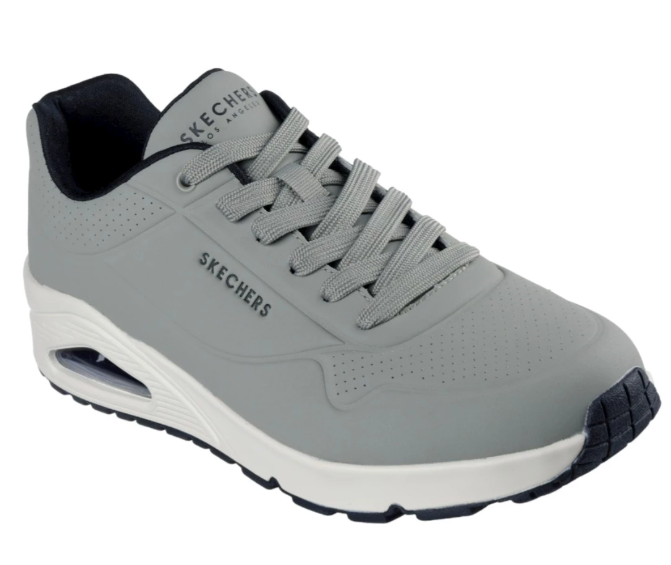 Lo stile classico con imbottitura ad aria viene rivisitato nella scarpa Skechers Street™ Uno - Stand on Air. Questo modello stringato di tendenza presenta una tomaia sintetica traforata liscia con soletta Air Cooled Memory Foam® e intersuola ammortizzata ad aria con tecnologia visibile Skech-Air®