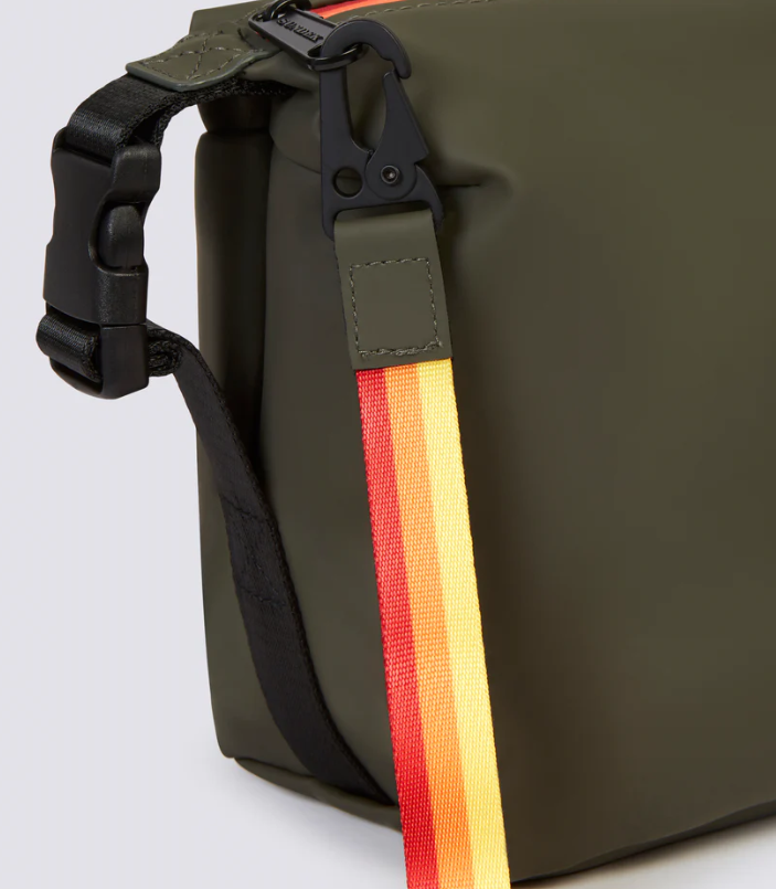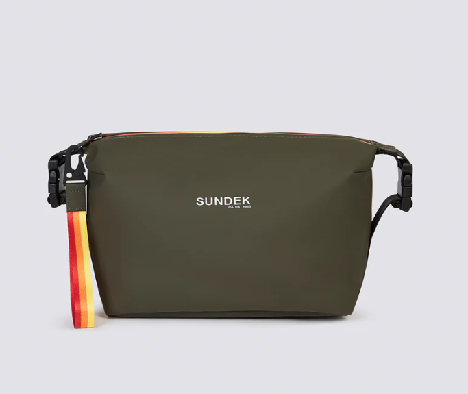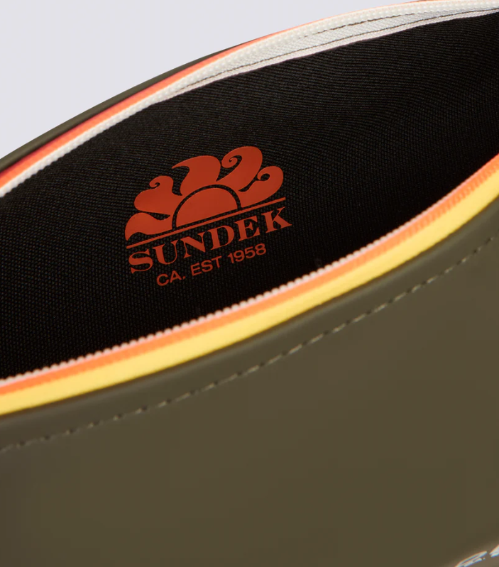 100%POLIURETANOto Sundek. Comodo e pratico, è dotato di cerniera saldata con dettaglio dell'iconico arcobaleno Sundek, oltre a una tracolla staccabile e regolabile.