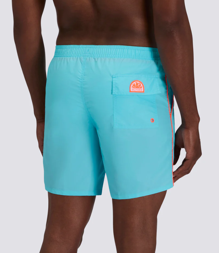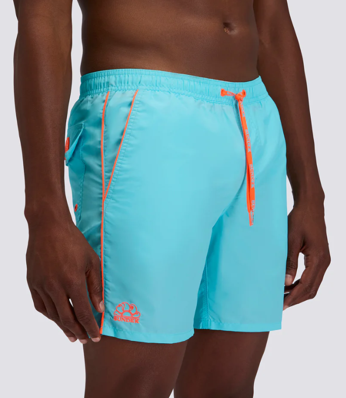 Perfetto per nuoto, beach volley, vela e tempo libero, questo shorts mare combina funzionalità sportiva e stile casual. Il design con piping lo rende ideale per chi vuole distinguersi con un dettaglio in più, senza rinunciare al comfort e alle performance targate Sundek.