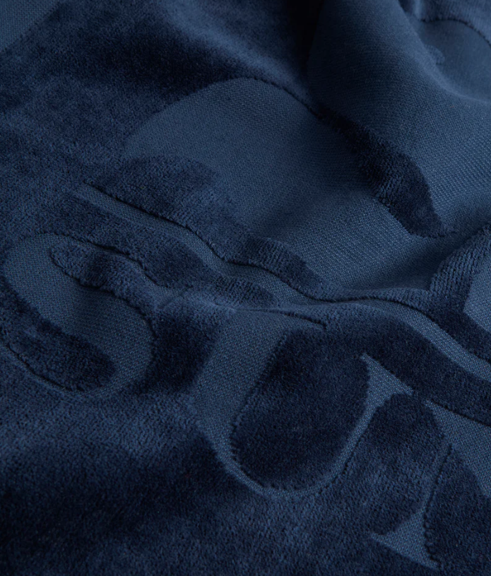Telo mare in spugna jacquard con logo in tono e cornice, entrambi in emboss.