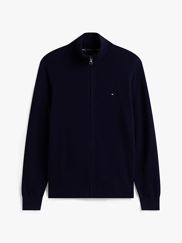 La felpa con zip integrale è realizzata in morbido misto cotone pima e cashmere per un look raffinato, accentuato dall'iconica bandierina ricamata.
