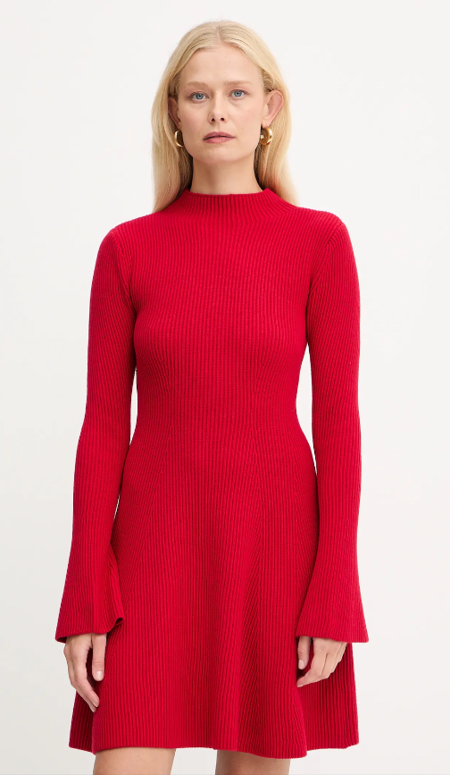 Twinset vestito. Realizzato in maglia elasticizzata spessa. Il contenuto di lana protegge dal freddo, mentre l'aggiunta di poliammide aumenta la durata del prodotto.