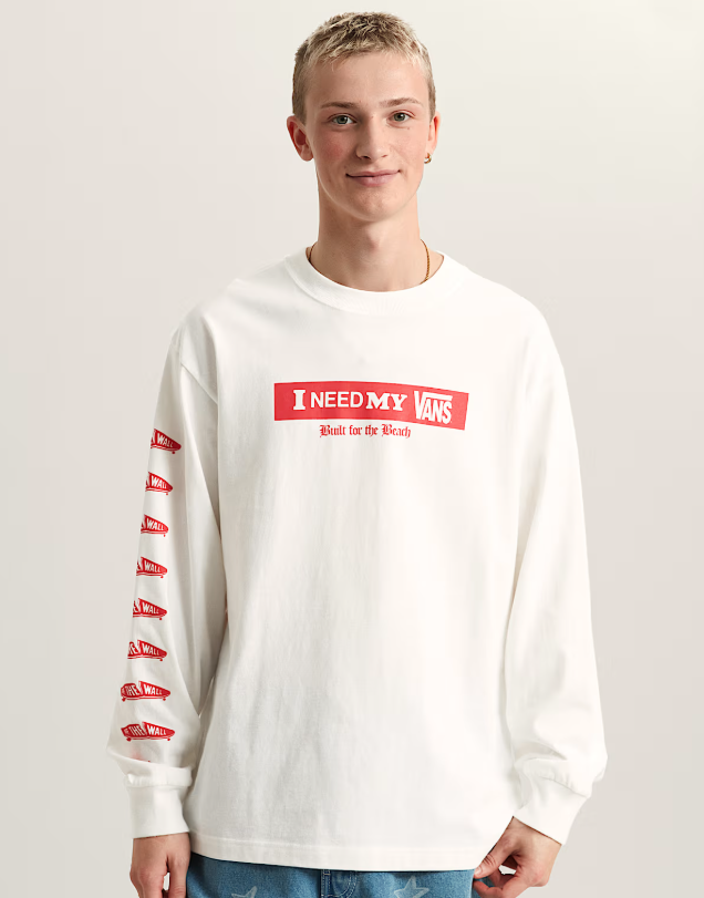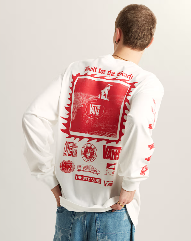 Questa maglietta a maniche lunghe combina il classico stile da spiaggia di Vans con una grafica rétro alla moda. La vestibilità ampia e la morbida maglia di cotone garantiscono il massimo comfort per l'uso quotidiano, mentre lo slogan "Built for the Beach" e le immagini legate al surf richiamano le origini californiane del marchio. È un capo essenziale e casual che ti permette di portare sempre con te il ricordo del mare.