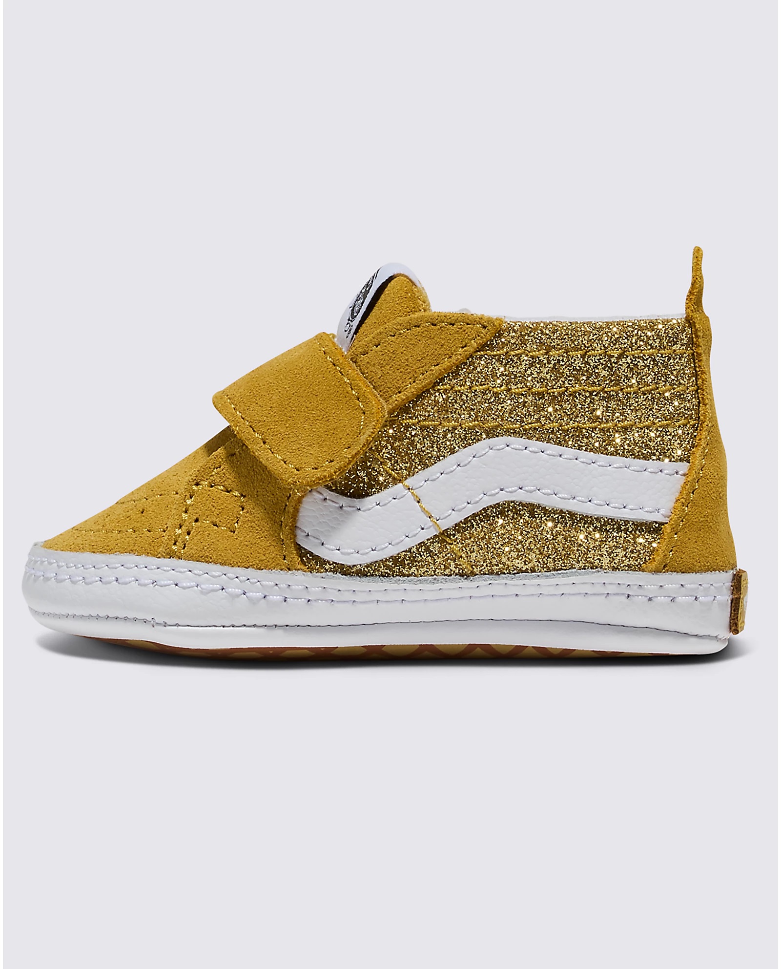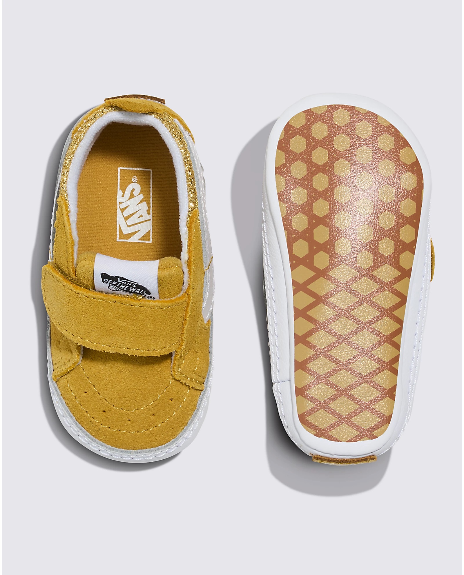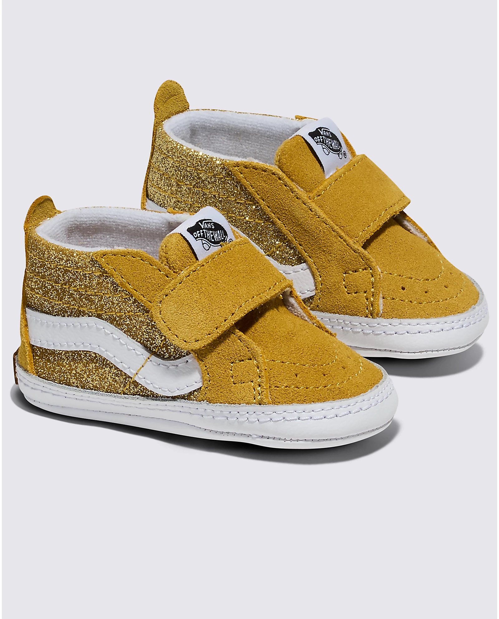 Ridisegnate per una calzata perfetta nello stile delle Sk8-Hi originali, le Sk8-Hi Crib sono state realizzate appositamente per i più piccoli, con chiusure a strappo singole e tiranti sul tallone per un facile accesso e sfilamento. In linea con la classica estetica Vans, una stampa sulla suola imita la nostra iconica suola waffle e l'aggiunta di una crosta rossa sul tallone completa il look.