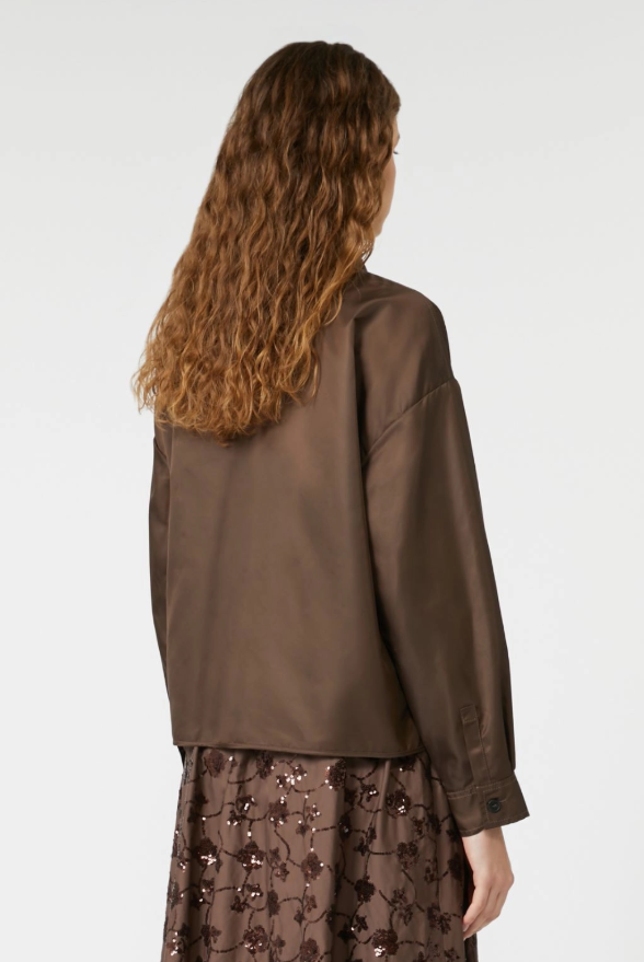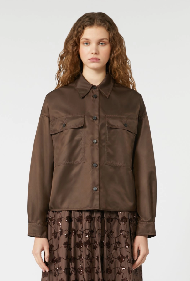 Camicia cropped dal volume boxy, con tasche a patta con bottone applicate sul patto.